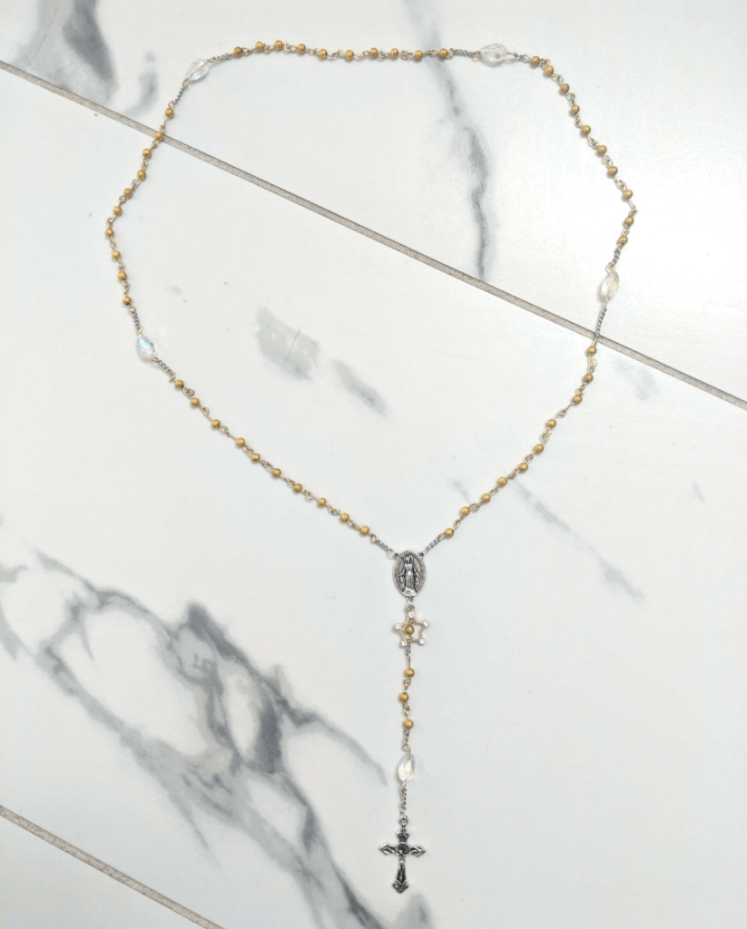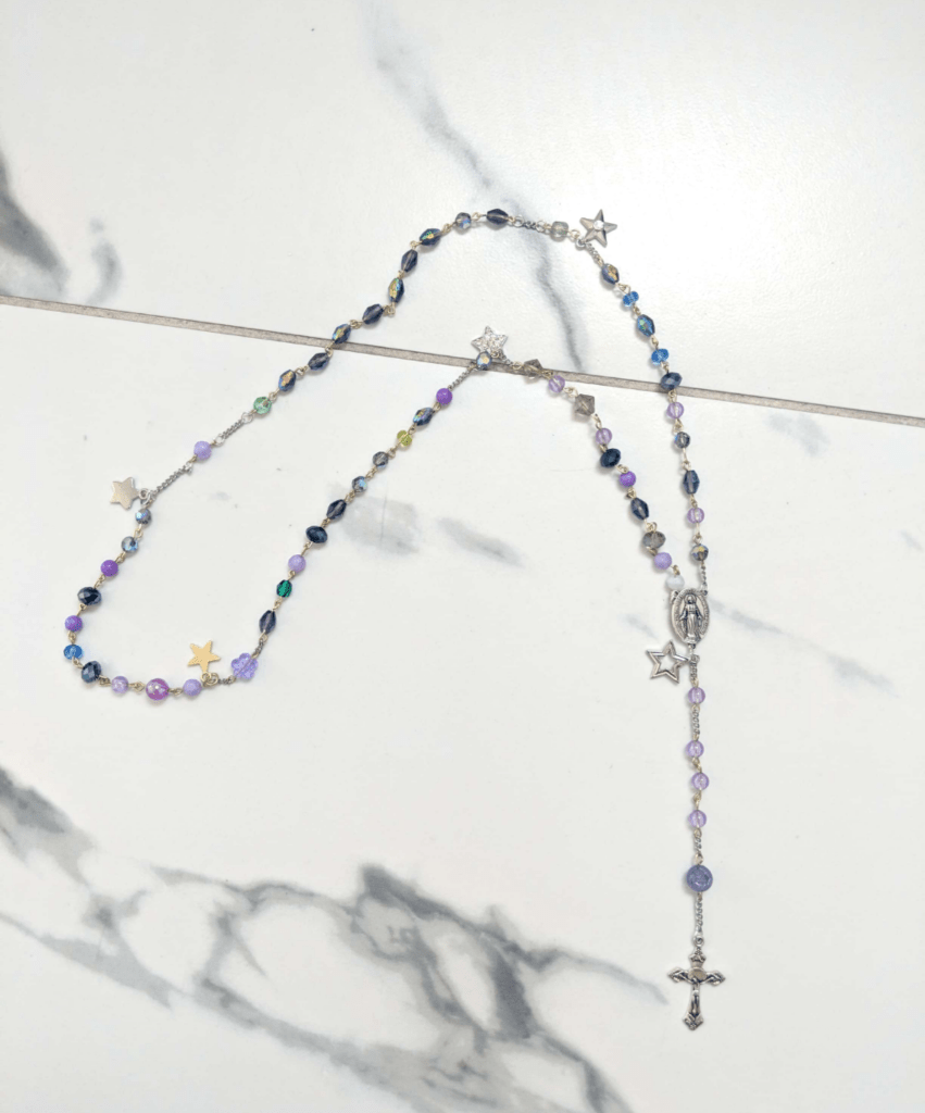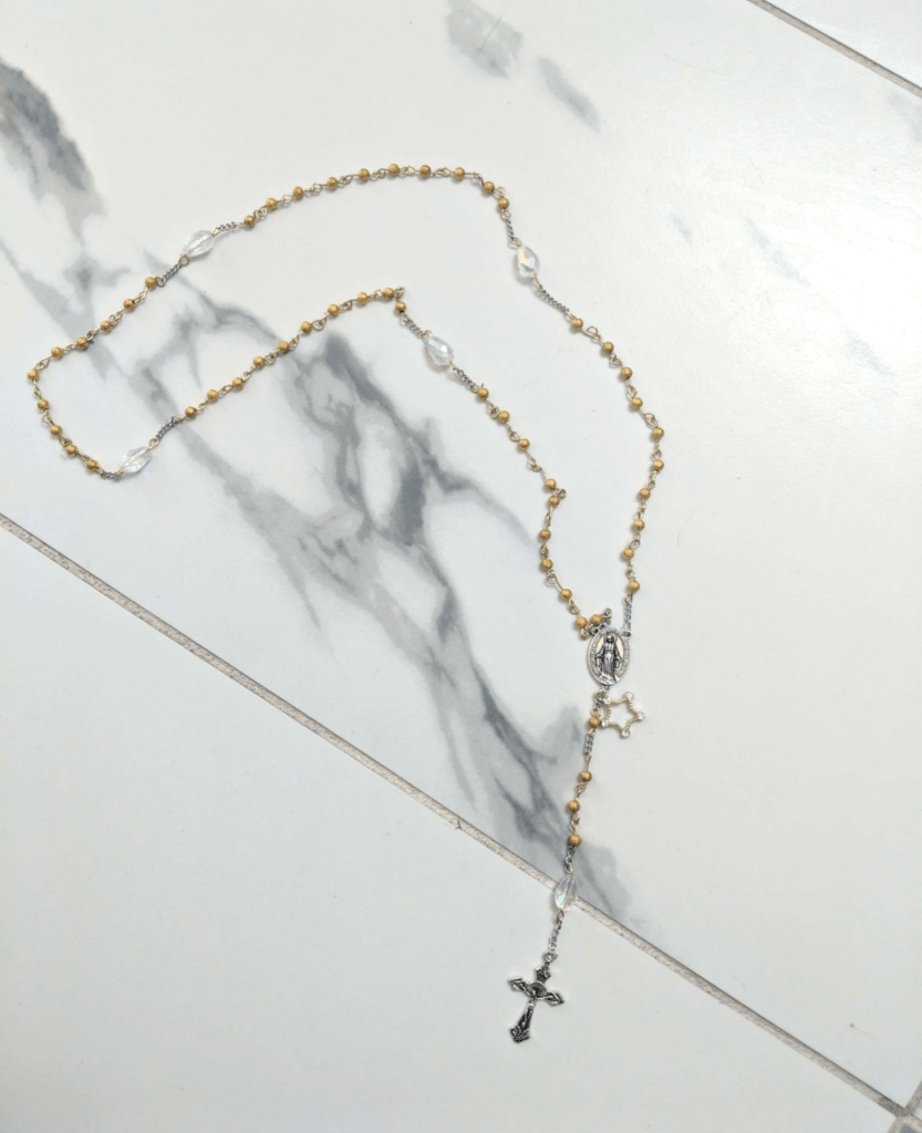 Rosary noun (in the Roman Catholic Church) a form of devotion in which ten Hail Marys are repeated, each decade preceded by an Our Father and followed by a Glory Be.